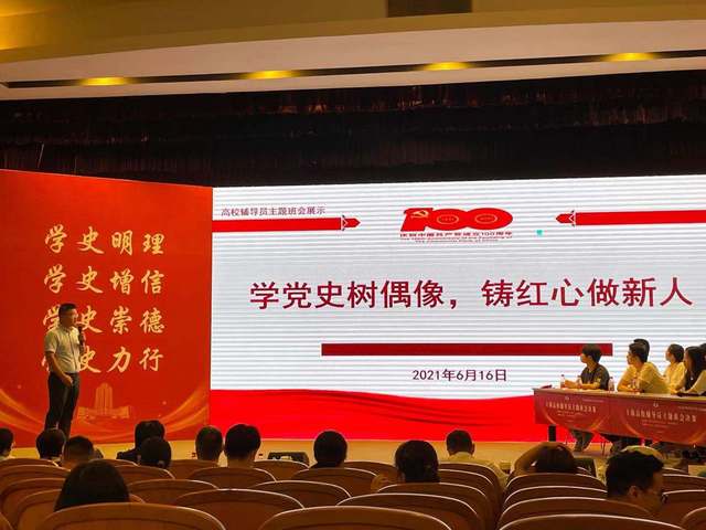 此次“上海高校辅导员主题班会展示活动”由中共上海市教育卫生工作委员会、上海市教育委员会主办,东华大学承办,来自复旦大学、东华大学 、华东师范大学、上海大学等几十所高校参与赛事。主题班会是辅导员开展大学生思想政治教育及价值引领的重要阵地,是开展班级日常事务管理、学风建设等工作的重要抓手。本次比赛紧紧围绕党史学习教育展开,将党史学习教育有机融入日常学生思想政治教育,引导学生从党史中汲取智慧和力量,比赛分为初赛教案评审、复赛现场说课和决赛班会展示三个阶段,除关注参赛辅导员现场表现外,也对主题班会教案设计、PPT制作等基础能力进行了考察,较为全面地评估辅导员在主题班会开展工作的素质能力水平。