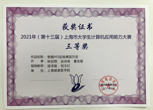 附件:2021年(第十三届) 上海市大学生计算机应用能力大赛决赛获奖名单