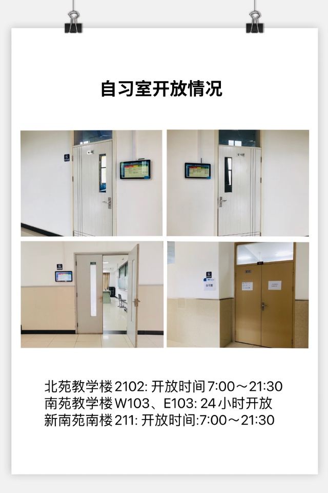 针对自习室明确开放时间和开放地点的问题,当即给予了辅导员和学生反馈,将三个校区教学楼具体教室号、开放时间等信息面对二级学院进行发布,今后将根据学生的需求变化及时调整自习室的开放数量和时间。