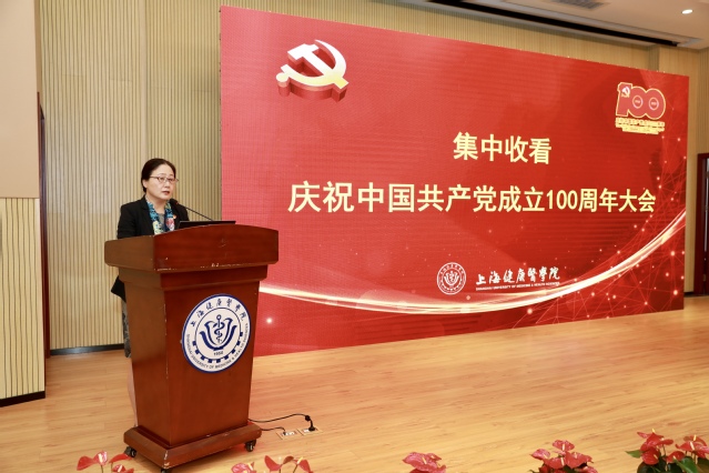 上海健康医学院党委理论学习中心组成员、全体中层干部、劳模代表、民主党派代表、全体辅导员和学生代表一起,满怀激动喜悦的心情,在北苑1号楼200人报告厅集体收看庆祝大会实况转播。同时,各二级党组织充分利用本单位现有条件,组织本单位干部职工和党员学生收看收听,离退休老同志在家收看收听,热烈庆祝中国共产党百年华诞。