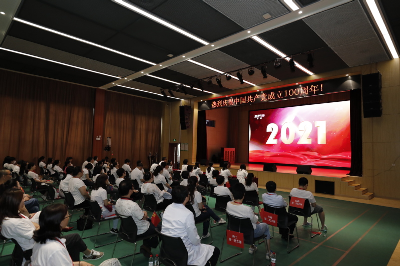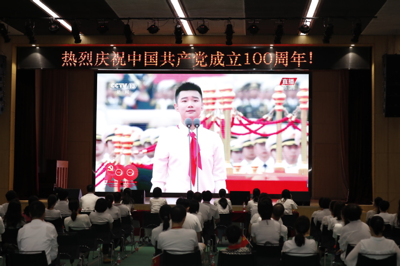 7月1日上午,我校党总支组织全体党员在大礼堂二楼集中在线收看中国共产党成立100周年大会。党总支书记、常务副校长钱艳,副校长徐敏出席。
