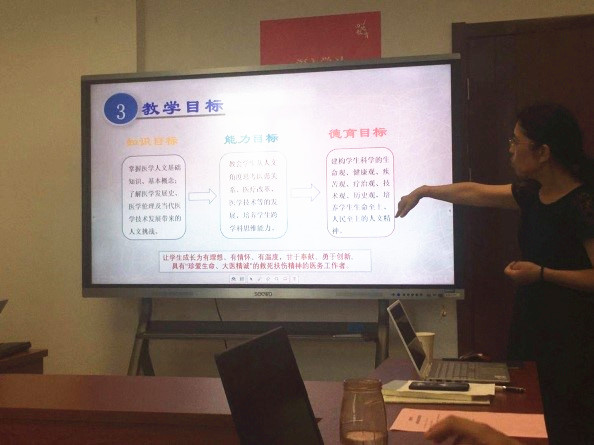 闵建中以“数学类基础课课程思政的建设—以《概率论与数理统计》为例”进行了课程思政说课。陆理原老师针对《医学与人文》课程进行了课程思政说课。