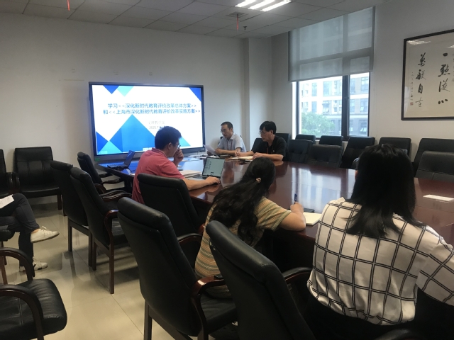 为深化新时代教育评价改革工作,全面贯彻党的教育方针,坚持社会主义办学方向,落实立德树人根本任务,建立科学的、符合时代要求的教育评价制度和机制,文理教学部于2021年7月8日在南苑2号楼302会议室开展了《深化新时代教育评价改革总体方案》和《上海市深化新时代教育评价改革实施方案》两个文件的学习活动,全体教职工参加。