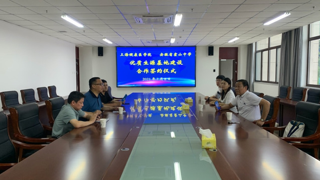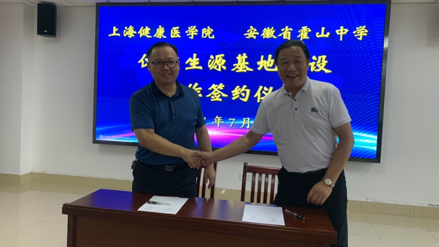在签约仪式前,霍山中学校长王友超带领我们参观了霍山中学的新校址,并向我们详细介绍了霍山中学的办学历史、总体规划、教育教学以及学生管理等方面的情况;同时,对与上海健康医学院共建优质生源基地表示肯定。随后,孙玉良院长就上海健康医学院的办学历史、办学宗旨、人才培养、教学改革、招生就业等方面做了详细的介绍,希望通过共建优质生源基地,搭建起校校合作的桥梁,进一步推动双方的互助合作和共同发展。