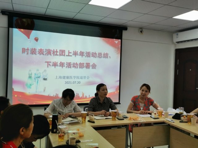 7月20日下午,学校退休教职工时装表演社团在上海健康医学院附属卫生学校召开上半年活动总结、下半年活动部署会,校工会常务副主席凌文惠、校退管办主任刘雯婷、社团成员20余人出席了会议。