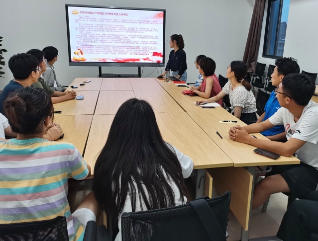 7月12日晚,医疗器械学院学生第一党支部在新南苑18号楼506室开展习近平总书记在庆祝中国共产党成立100周年大会上的重要讲话精神学习交流活动。支部书记李茜老师担任主持。