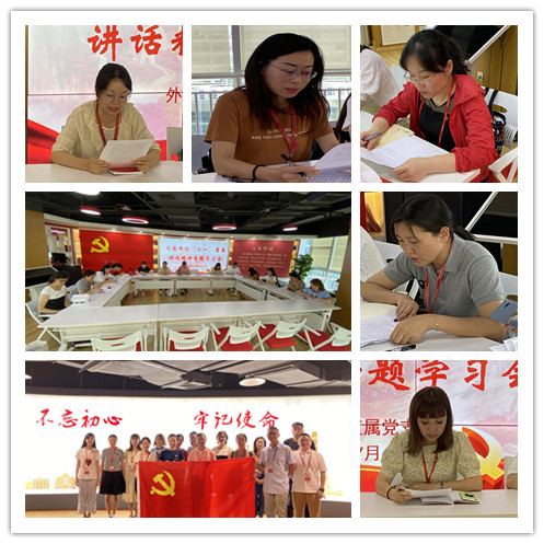 孙洁琼老师代表外语党史学习示范小组首先表达了自己和组员在收看“七一”盛典时的喜悦激动之情,在认真聆听了习总书记在天安门城楼上发表的“七一”重要讲话后,深刻感受到我们党这栉风沐雨的百年岁月是多么辉煌灿烂,总书记的讲话为我们指明了新征程的前进方向。