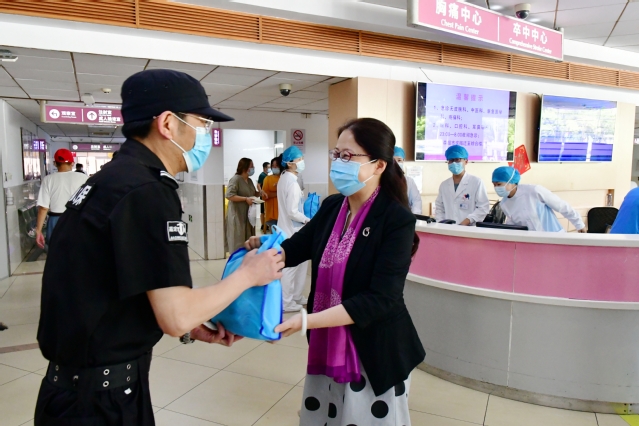 上海连续10天高温考验着各条战线上的工作人员。学校各个附属医院的一线医务工作者也是不畏高温,奋战在岗位上,坚守初心,做人民健康的守护人和白衣天使。为了让附属医院医务工作者感受到夏日一缕“清凉”,校领导班子分别到周浦医院、崇明区中心医院、六院金山分院以及嘉定区中心医院,向急诊、发热门诊、核酸检测等岗位上的医务工作人员以及不畏酷暑坚守门卫安全的安保人员送上了洗发水、沐浴露、毛巾等防暑降温生活用品。