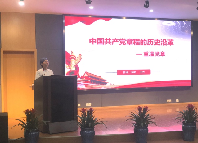 周浦医院内科一党支部支委王芳同志以《中国共产党章程的历史沿革——重温党章》为主题,从中共一大确定党的名称,规定党的纲领开始,到学习贯彻党的十九大精神,期间每一次对党章的修改、完善以清晰、划重点的方式给大家讲了一堂精彩的党课。党章的丰富和完善说明党的指导思想的与时俱进,引领着国家发展、团结凝聚全国人民,是党的建设不断进步和加强,充分说明我们中国共产党是一个成熟的政党,是一个伟大的政党。