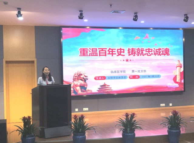 临床医学院党总支书记、院长蔡巧玲出席活动并讲话。她指出,学党史、开新局、干实事为教学工作者和临床医护人员指明了方向,作为教学工作者,一定要探索不同的教学方式,用心把学生培养好,送到临床,用自己的专业解决患者的病痛,为实现健康梦不断奋斗!
