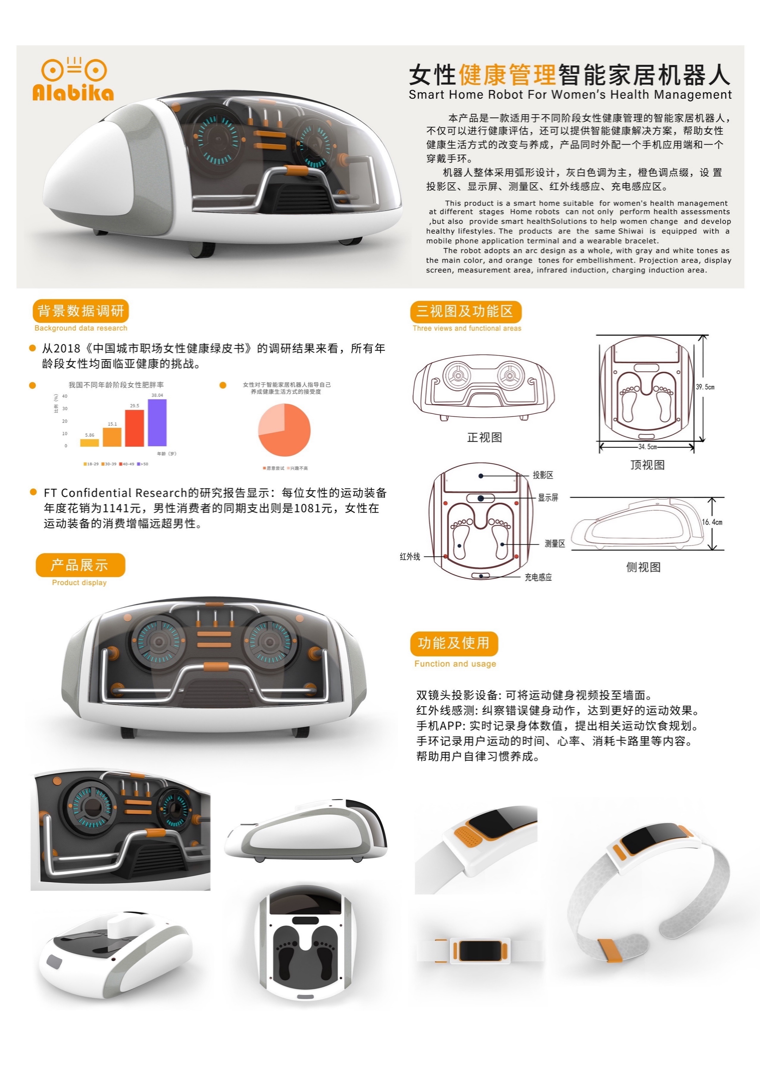 一等奖 | 《Alabika女性健康管理智能家居机器人》 | 王晓琦 (艺术教育中心) | 朱晨(医学影像学院)、冯江月(药学院)、柴智斌(基础医学院) |