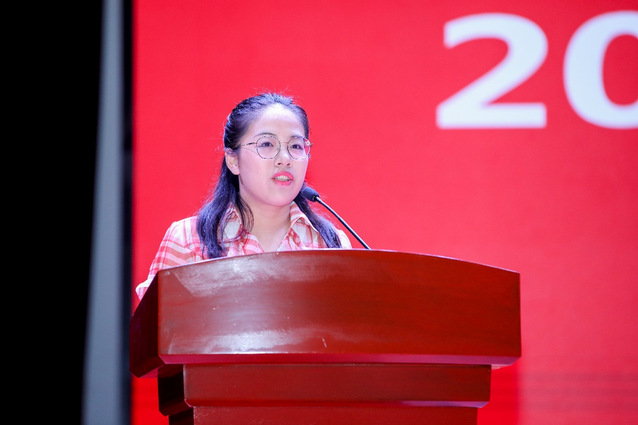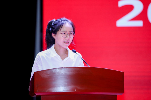 护理与健康管理学院专职辅导员吉洁作为2021级新生班级辅导员代表发言。她从辅导员视角对学校英文简称SUMHS做了别具一格的诠释。她表示在党的百年华诞迎来五湖四海的21级新生是一种特殊的缘分,希望同学们能够秉承先贤之志,始终不忘医学初心,坚定“以医报国”的理想,将个人发展与学校发展、民族、国家的前途命运紧密相连,主动担负起时代使命,在服务健康中国中书写人生壮美华章。