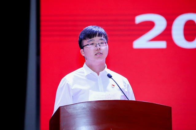 2020年上海市奖学金获得者、拥有2项实用新型专利的大四学长,来自医疗器械学院18级临床工程技术专业的湛洋同学作为在校生代表发言。他说到大学是一切的开始,是培养最初理想信念的地方,各位大一的萌新们拥有无限多的选择,既可以做一个认真学习、攻克难题的学霸;也可以做一个无私奉献、服务他人的志愿者;还可以做一个怀抱兴趣、施展才华的社团成员等等。他希望各位新生要珍惜大学时光,在最该努力的时候,做出最努力的模样。