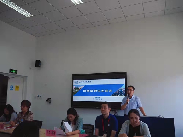 9月22日,海南班师生见面会在新南苑16号楼2楼心肺实训室召开,莅临本次见面会的海南卫生健康职业学院校长张梅、项目办主任叶绮霞、系主任李赫男,上海健康医学院产学合作处副处长(主持工作)金亮、学生工作部副部长(主持工作)吕晓丽、教务处副处长蒋淑敏,康复学院党总支书记王红、院长郭琪、党总支常务副书记蒋晓明,以及学院教师代表。海南班20级高职康复治疗技术1班的49位全体同学出席本次师生见面会。