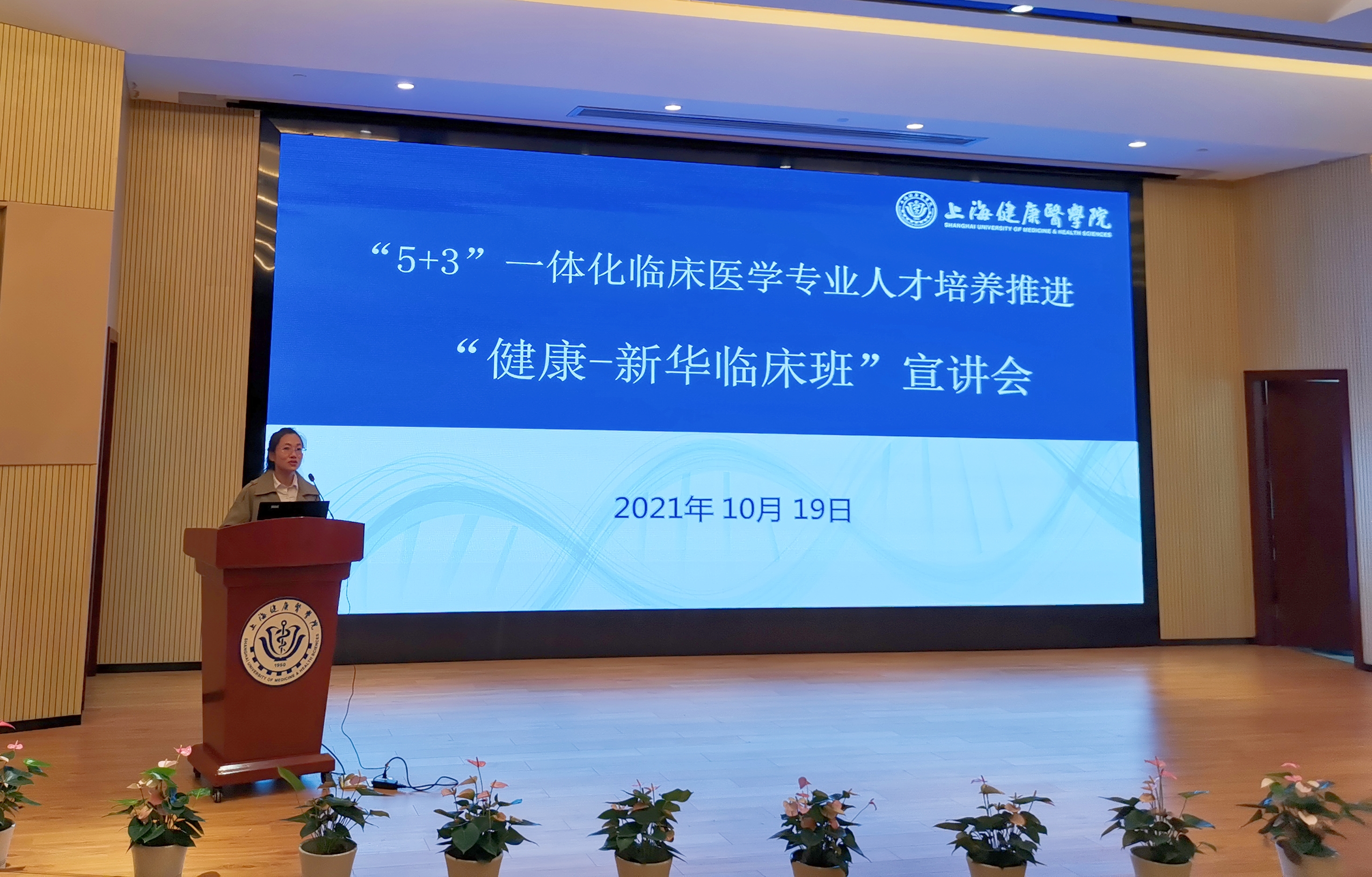 10月19日下午,临床医学院在北苑200人报告厅开展“5+3”一体化临床医学专业人才培养推进工作,交通大学医学院附属新华医院教务部、全科医学科、康复医学科、临床病理科、急诊科和重症医学科的负责人莅临此次会议,针对“健康-新华”临床班进行了宣讲,会议由临床医学院党总支副书记罗瑾琰主持。