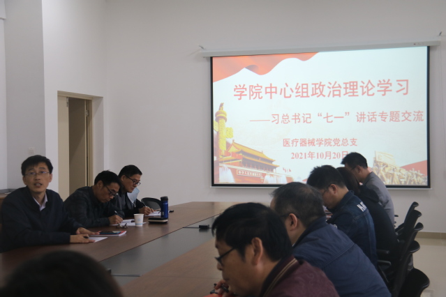 10月20日下午,医疗器械学院在新南苑18号楼504室召开习近平总书记“七一”重要讲话精神专题交流会,学院党总支委员、各党支部书记、团总支书记、教研室主任、科级干部、工会主席等参加了会议,学议由学院党总支李晓欧书记主持。