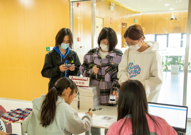 对于未能参加阅马比赛的报名选手,图书馆邀请他们加入到由勤工助学的馆员助理组成的阅马比赛工作小组,让他们从工作人员的角度感受比赛氛围、积累比赛经验。阅马比赛工作小组全体成员分工明确、团结合作、不辞辛劳,全程负责赛前宣传、准备物料、赛场布置等工作,并在正式比赛前一天开展赛前工作培训,对于未能参加培训的工作人员,发布《阅马比赛工作流程》,以确保工作人员熟悉比赛环节、了解岗位职责。比赛当天,工作小组成员提前2个小时抵达比赛场地布置场地、准备比赛材料,为每一组参赛团队拍摄合影。比赛中期轮流值守阅读区、答题区,维护赛场秩序,比赛后期负责交书、答题、发放奖牌和清场等。本届阅读马拉松大赛能够平稳有序地开展,离不开这群热爱阅读、无私奉献、团结合作的读者们。