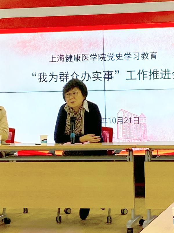 党委组织部部长郭戎静首先传达了上海高校党的建设工作会议精神,随后各二级党组织依次交流“我为群众办实事”实践活动的工作推进情况,在各二级党组织的努力下,目前二级党组织“我为群众办实事”61项重点项目,已经完成56项(92%),持续推进2项,推进中1项,30项联系党支部项目,已完成29项(97%),推进中1项,按要求年底100%完成。