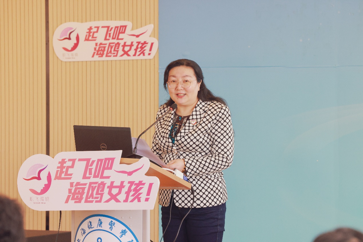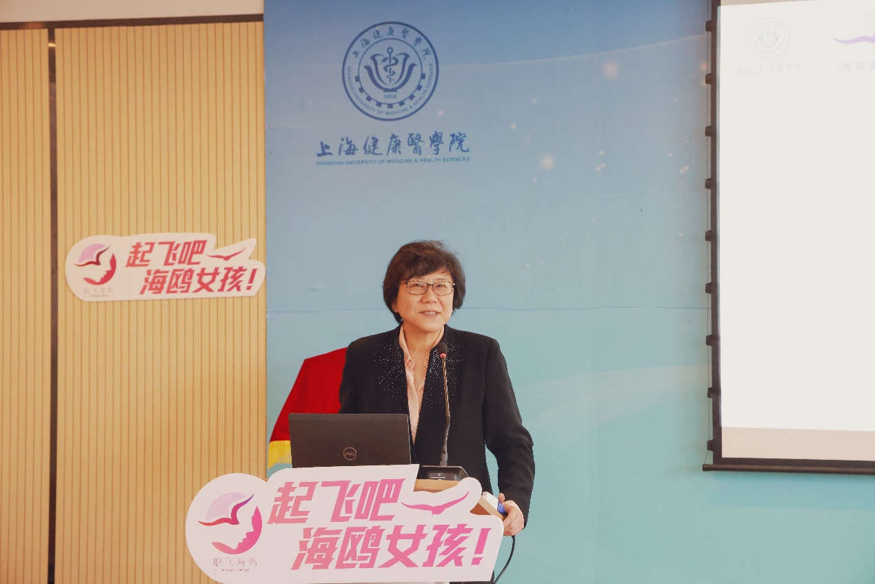 首先,于莹代表学校致欢迎辞。她对我校能参与海鸥计划,能成为首批该项工作计划的合作战略院校,并能非常荣幸的迎来海鸥导师和专家的现场指导表示衷心的感谢。她表示上海市女大学生职业飞翔“海鸥计划”和我校的品牌项目“我与教授面对面”等活动对学生的未来发展意义重大,并认为“海鸥讲堂”进入上海健康医学院更是意义非凡。她首先介绍了学校建校的背景及专业设置,强调了学校对接“健康中国”和“健康上海”战略部署,坚持“应用型、特色性、国际化”办学定位,坚持“医工结合、医养结合、医保结合”发展方向,培养社会紧缺应用型人才。她指出,现在培养的学生将会是未来救死扶伤的医护人员,她们的职业发展与国家和社会的医疗卫生事业息息相关。结合我校女生比例近70%的实际情况,我校的“我与教授面对面”活动也一直如火如荼的开展。疫情期间有10位教授,近2000人次的女大学生参与活动,今天又迎来了海鸥讲堂的开设,为女大学生的就业和职业导航助力加油,这是市妇联、市教育妇工委及女企业家协会对我们学校、我们的女大学生的关爱、厚爱,希望我校妇工委扎实推进上海市职飞海鸥计划,为女大学生的成长、成才作出积极的贡献。