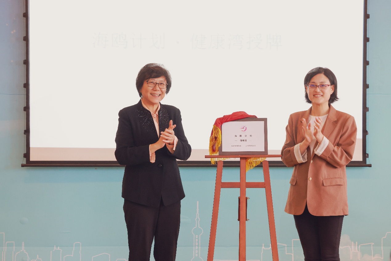 随后,蔡婷介绍了职业飞翔“海鸥计划”。紧接着,于莹和许一飞在现场所有人的掌声中为“健康湾”揭牌。张芳致辞中首先感谢各位的到来并预祝本次活动圆满成功,然后介绍了海鸥计划的宗旨及开展情况,并希望更多的小海鸥可以参与进来。她感谢上海市妇女联合会,上海市教育系统妇工委,上海市教委还有各位海鸥导师,希望在疫情防控常态化背景下,海鸥湾可以使更多的女大学生得到帮助,使每一个小海鸥都可以展翅飞翔。