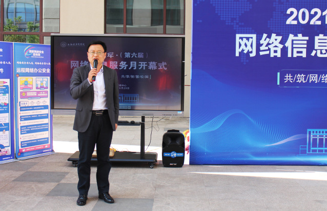 沈国芳在开幕式致辞中指出,智慧校园离不开网络安全,只有不断增强全体师生网络安全意识和防范意识,才能筑牢网络安全防线,让全校师生真正享受智慧校园的成果。网络安全为人民,网络安全靠人民。他结合现场宣传展板中的网络安全防护知识,以近期发生的案例,分析了当前国际国内网络安全形势,深入浅出地讲述了网络安全意识的重要性以及网络安全事件的危害性,强调提升网络安全防范意识以及提升网络安全防护技能的必要性,希望学校师生能够树立正确的网络安全观,牢固树立网络安全意识。