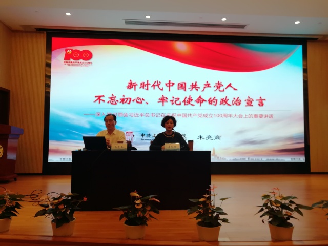 党史学习教育推进之际,我校第一次党代会即将召开之时,11月1日,学工部组织集中学习习近平总书记在庆祝中国共产党成立100周年大会上的重要讲话精神。中共上海市委党校副校长、上海行政学院副院长朱亮高应邀作专题辅导。各二级学院党总支副书记、辅导员、学生党员代表和学工党支部全体党员100余人参加培训。会议由校党委副书记、副校长唐红梅主持。