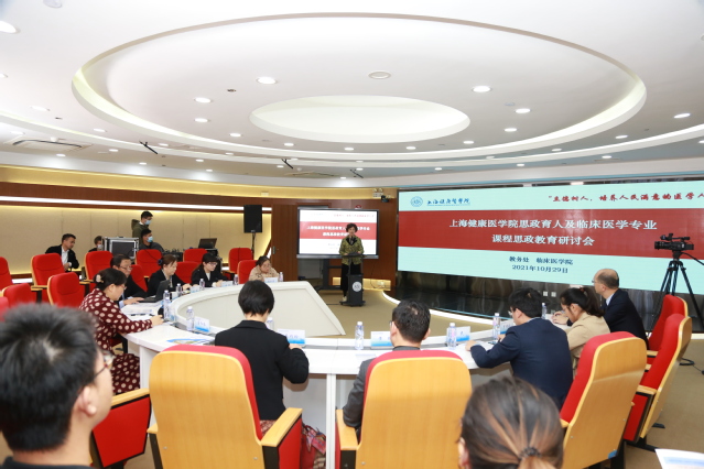 2021年10月29日上午,由学校教务处主办、临床医学院承办,“上海健康医学院思政育人及临床医学专业课程思政教育研讨会”在南苑图书馆五楼顺利召开。研讨会以“立德树人,培养人民满意的医学人才”为主题,通过线上与线下结合的方式召开。出席会议的有上海健康医学院党委副书记、副校长唐红梅、上海交通大学医学院教务处副处长钮晓音、上海健康医学院教务处处长王莉、马克思主义学院院长孙玉良、临床医学院院长蔡巧玲及师生代表、以及来自各附属医院、教学医院、合作单位共200余名师生通过在线收看直播或莅临现场参加了研讨会。研讨会由王莉主持。