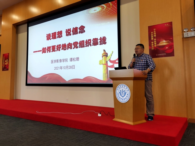 随后,医学影像学院专职组织员谭松珊为学员们带来了第二场专题讲座:谈理想,说信念——如何更好地向党组织靠拢。他强调作为一名入党积极分子,要规范自己的日常行为,积极参与各项活动,践行为人民服务的宗旨。定期向党组织汇报思想情况,端正自己的入党动机,提高政治素养,坚定共产主义远大理想。要以实际行动向党组织靠拢,归根到底还是要从身边做起、从点滴做起。(医学影像学院、康复学院、医疗器械学院、药学院、健康与公共卫生学院)