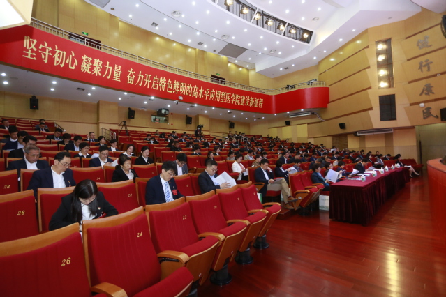 大会号召:站在新的历史起点上,让我们迅速行动起来,更加紧密地团结在以习近平同志为核心的党中央周围,高举中国特色社会主义伟大旗帜,深入学习贯彻习近平总书记在庆祝建党一百周年大会上的重要讲话精神,弘扬伟大建党精神,“厚德至善 健行康民”,以“功成不必在我”的精神境界和“功成必定有我”的历史担当,团结带领全体师生,为建成特色鲜明的高水平应用型医学院而努力奋斗!