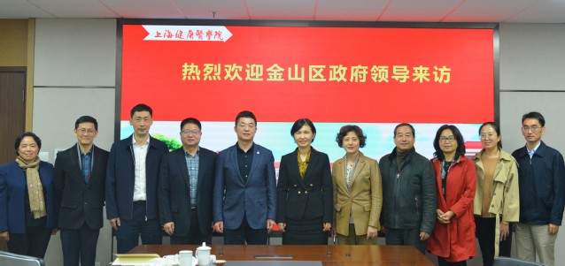 11月17日下午,金山区政府党组成员曹婕、区卫健党工委书记孙群荣、区卫健委主任吴靖平、区教育局局长郑瑛、区政府办副主任范艳红、区卫健委副主任周永辉、六院金山分院院长胡军等一行来访我校,就深入推动双方合作事宜进行交流讨论。我校校长吴韬,党委副书记、副校长唐红梅,副校长沈国芳以及学校相关部门、二级学院负责人参加接待。
