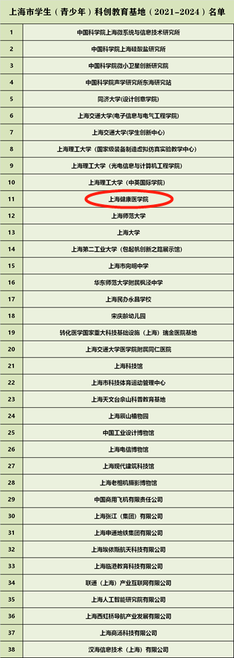 日前,经公示,上海健康医学院依托实践教学中心创建为首批上海市学生(青少年)科创教育基地(2021-2024)。