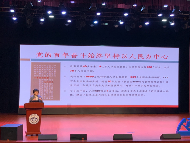 课程伊始,于莹以一组2020年度健康医学院体质测试数据,将“大健康”理念拉近到学生自身,让同学们切身认识到“健康是一种责任”。随后,她通过一系列数据,详实具体地向同学们讲授“习近平总书记论人民健康”、“党的百年奋斗始终坚持以人民为中心”、“健康中国战略与健康产业发展”和“健康的事业,我们的事业”四个板块,让同学们真实地“触摸”到“大健康”理念、真正地“读”懂“大健康”理念。