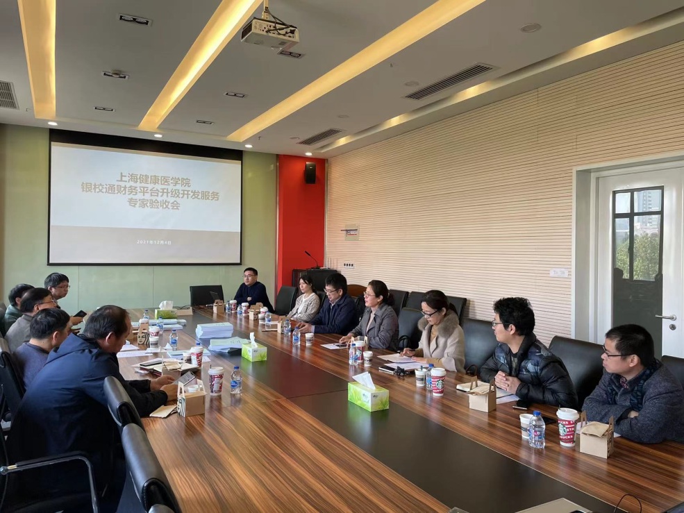 2021年12月4日上午,我校召开“银校通财务平台升级开发服务”项目专家验收会,学校财务处、信息管理中心相关人员与项目承建单位负责人参加,专家组由来自多所高校的财务管理、信息管理方面专家组成,市教委财务处处长何鹏程、财务与资产管理中心副主任徐敏受邀出席,会议由财务处负责人王永芝主持。