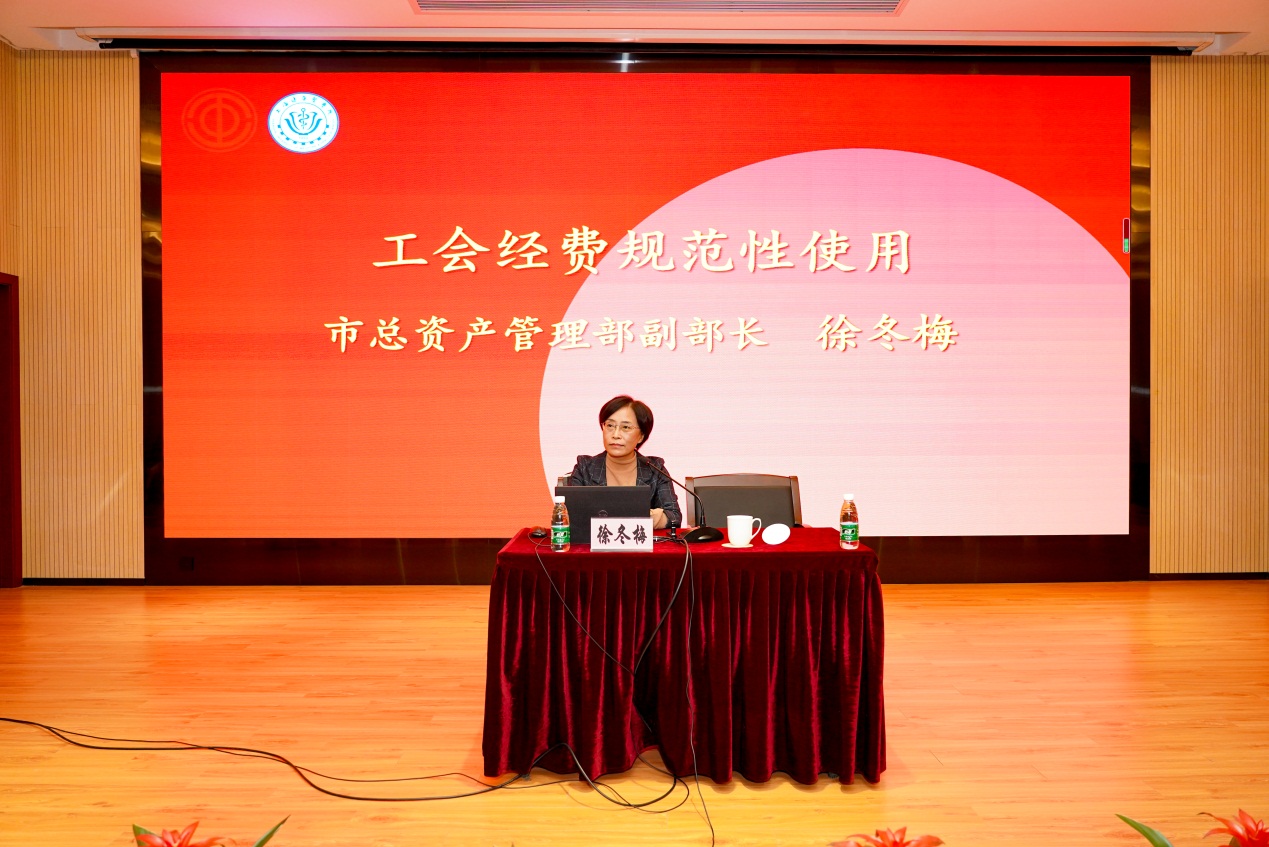 培训第二部分,特邀上海市总工会资产管理部副部长徐冬梅老师做了关于“工会经费规范使用”的专题培训。她从主要文件目录—中央和有关部委、近两年文件、巡视过程中发现的问题和经审审计发现问题、收据管理问题做了详细的说明。