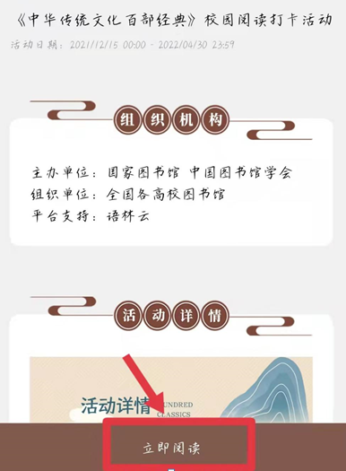 3. 在“阅读打卡”活动界面点击“立即阅读”;
