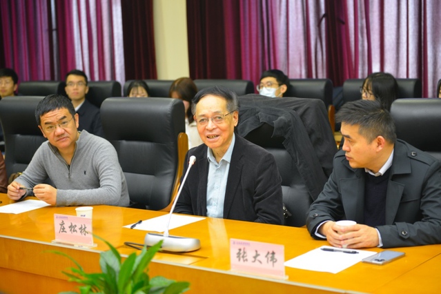 2021年12月23日下午,上海理工大学庄松林院士团队应邀来到我校进行学术交流。上海理工大学光电学院院长庄松林院士、常务副院长张大伟教授、宋波教授、常敏教授、谢新妹主任一行与会。我校吴韬校长、科技处、医学影像学院、医疗器械学院、上海市5G+智慧医疗创新实验室师生50余人参与交流。