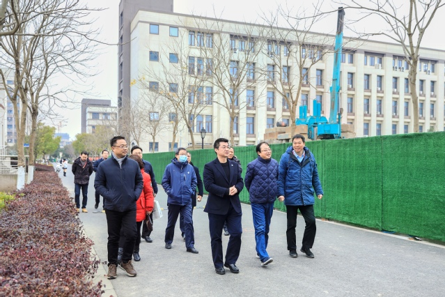吴韬一行先后来到南苑扩建工程项目预开工现场、东苑协同创新中心、北苑1号楼三层办公区域等现场,详细了解校园规划布局调整和建设进展情况,每到一处,他都认真听取项目进展情况汇报并代表学校对参建各方的辛勤付出表示慰问和感谢,要求抓好工程进度的同时始终不忘施工安全和质量。