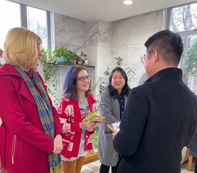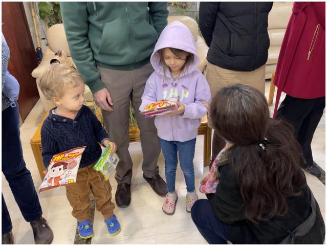 校领导还亲切地与外籍教师的子女们进行了交谈,并亲自给小朋友们送上了他们喜爱的糖果。最后,校领导给这些远离故土,无法返国的外教和留学生送上了节日礼品,祝他们新春快乐!
