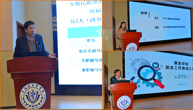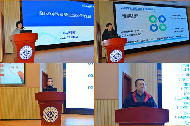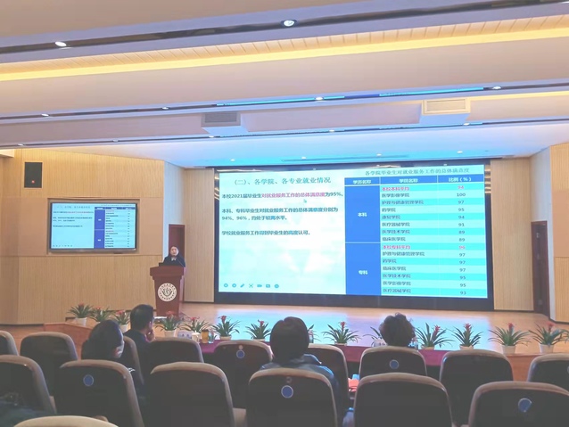 在今年严峻的就业形势下,各二级学院认真落实就业工作“一把手”工程,党政同责,院长和书记切实担负起了就业工作主体责任。临床医学院、医疗器械学院、医学影像学院的党总支书记分别进行了2021年就业工作经验交流发言,介绍了2022届毕业生就业工作的详细计划。护理与健康管理学院、康复学院、医学技术学院、药学院四个学院领导汇报了2022届毕业生情况排摸及下一步工作计划。