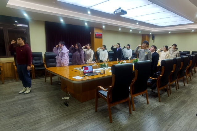 1月12日晚,医学影像学院学生党支部在南苑仁影楼306会议室举行新党员入党宣誓仪式,本次活动由支部纪检委员谭松珊主持,支部书记孙佳鸣、2021年第四季度入党的预备党员参加宣誓仪式。