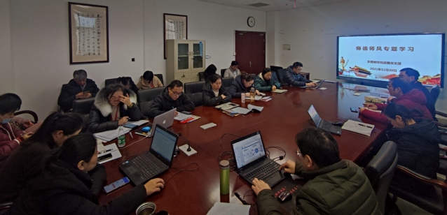 12月30日下午,文理教学部直属党支部为学习贯彻习近平总书记关于教师队伍建设特别是教师思想政治工作的系列重要讲话精神以及教育部教师思想政治和师德师风建设工作会议精神,落实学校进一步做好教师思想政治和师德师风建设工作的通知要求,在南苑2号楼302会议室组织召开师德师风专题学习,会议由书记秦禹权主持,教学部全体教师参加了专题学习。