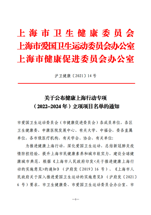 近日,健康上海行动专项(2022-2024年)评审结果公布,由我校吴韬校长领衔,联合上海市老龄事业发展促进中心、上海市第一人民医院和上海市第十人民医院等多家参与单位共同申报的“打造老年照护健康链,推进主动健康服务体系建设”获批立项。本次参评共计100家单位,222个项目,最终在人群赋能、行为干预、环境建设三个领域的19个专项项目予以立项。