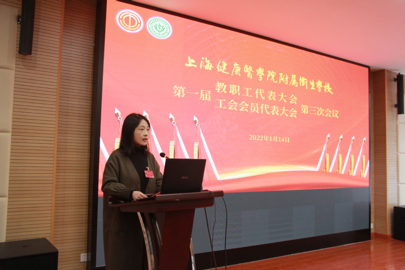 1月14日下午,附属卫生学校第一届教职工代表大会暨工会会员代表大会第三次会议在3号楼二楼报告厅圆满召开。上海健康医学院党委副书记、校长吴韬,工会常务副主席凌文惠,财务处副处长王嘉颖,学校全体校领导,36名教代表和全体列席代表出席会议。