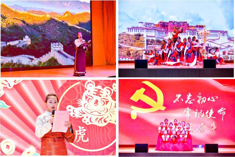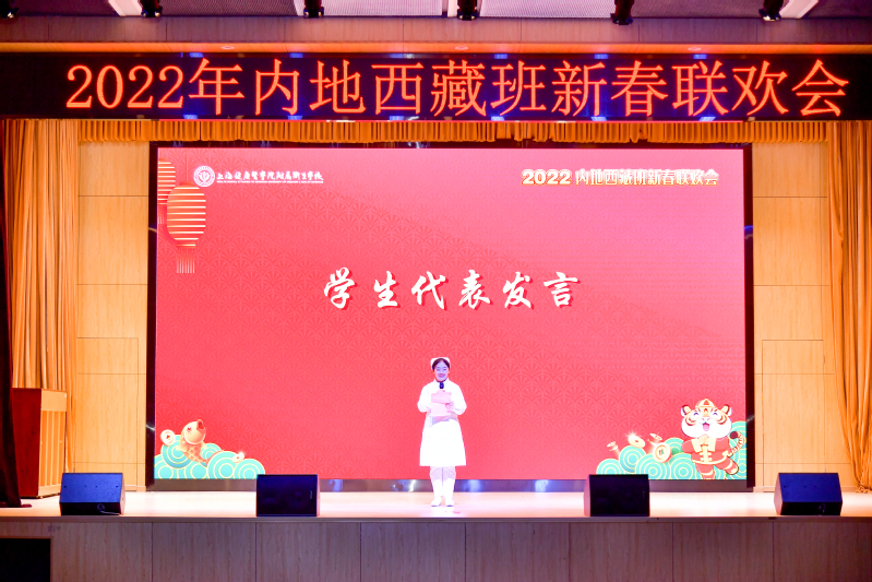 1月19日下午,我校2022年内地西藏班新春联欢会在大礼堂隆重举行。上海市教卫工作党委、上海市教育委员会、上海市民族和宗教事务局、上海健康医学院、徐汇区凌云街道、徐汇区民族联等领导一行莅临我校,为寒假留校的内地西藏班同学带来了亲切慰问,并与学生代表一起参加了新春联欢会。学校党政班子、中层干部代表、内地西藏班班主任和生活老师共同出席。