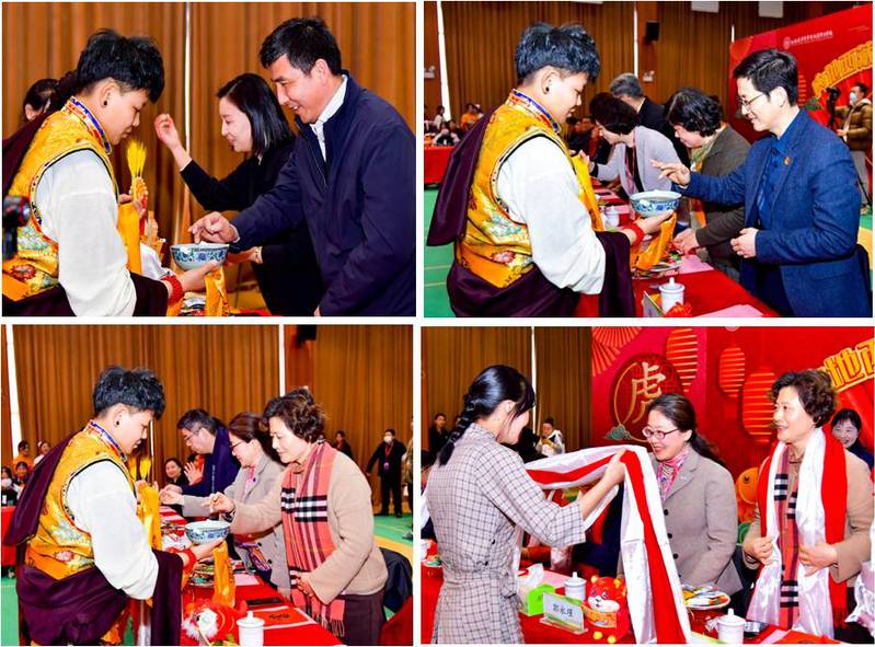 热情欢快的开场舞后,同学们手捧吉祥的切玛、献上洁白的哈达,对各位嘉宾的到来表达了她们最真挚的感谢和最热烈的欢迎。