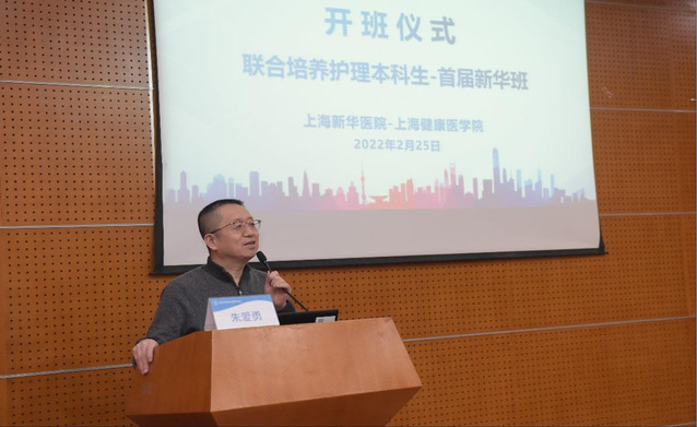 2022年2月25日下午,我校首届联合培养护理本科生“新华班”在上海交通大学医学院附属新华医院科教楼举行了开班仪式。新华医院副院长郑忠民、人事处处长陈磊、护理部副主任戈晓华,上海健康医学院护理与健康管理学院院长朱爱勇、副院长蒋颖等参加了开班仪式。开班仪式由新华医院护理部主任姜丽萍主持。