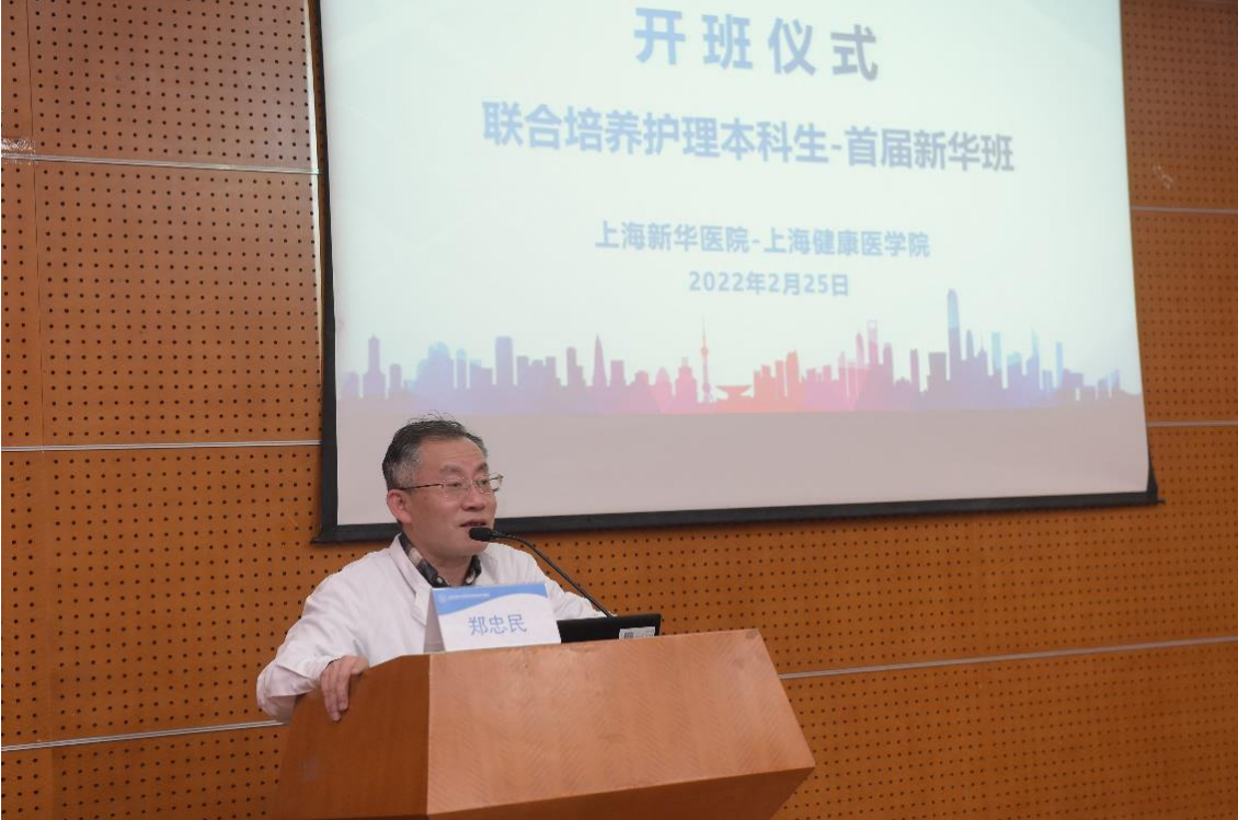 郑忠民用“一家人”形容医院和学校的历史渊源和长期合作关系,在致辞中饱含着对护理学科发展的赞许、对联合培养项目的信心,以及对学生们的殷切期望。他表示,院方将对学习环境、生活条件等各方面给予大力支持,希望学生们通过医院、学院与自身的共同努力学有所成,更期待毕业后能加入新华医院这个温暖、有爱的大家庭。