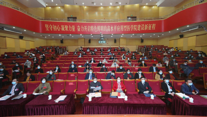 校长吴韬在会上作了学校工作报告。吴韬首先向一年来为学校事业发展辛勤付出的广大教职员工们表示诚挚的感谢。而后,吴韬从八个方面对学校2021年的工作进行了全面回顾总结,提出了2022年六个方面重点工作,明确了学校发展新阶段的新起点新任务。吴韬表示,过去的一年我们以习近平新时代中国特色社会主义思想为指导,深入学习贯彻党的十九大和十九届历次全会精神,凝心聚力,攻坚克难,统筹疫情防控与学校改革发展。胜利召开了中国共产党上海健康医学院第一次代表大会,开启了特色鲜明的高水平应用型医学院建设新征程;坚守办学兴校初心,聚焦服务新时代“健康中国”战略和“健康上海”行动计划,接续奋斗、创新发展,立德树人根本任务开创了新局面,学校高质量内涵建设取得了新成效,构建新医科建设格局迈出了新步伐,医教研管各项事业再创新佳绩。一是坚持党的领导,办学治校水平形成新格局;二是坚持规划引领,改革发展布局取得新成效;三是坚持立德树人,人才培养质量获得新提升;四是坚持引育并举,师资队伍建设迈上新台阶;五是坚持内涵发展,科技创新能效实现新突破;六是坚持使命担当,服务社会发展做出新贡献;七是坚持以人为本,内部治理体系构建新基础;八是坚持传承创新,现代校园建设展现新图景。