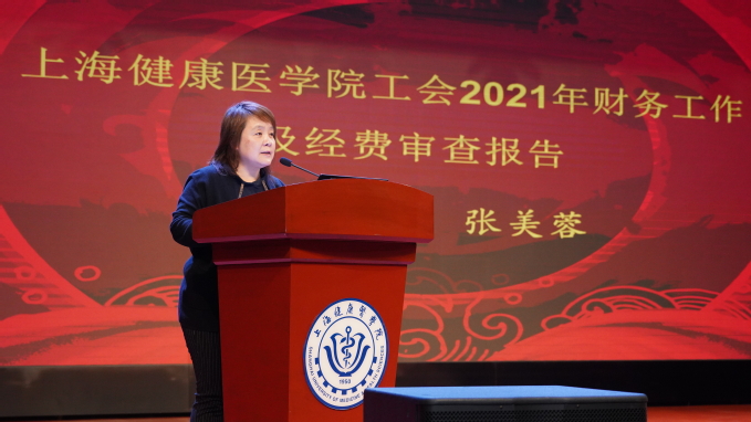 大会听取了工会经费审查委员会主任张美蓉作的《上海健康医学院工会2021年财务工作及经费审查报告》。她报告了2021年工会经费审查委员会对年度工会经费预决算的审核情况、大宗物品采购的事中监督及2022年工会经审会工作要点。