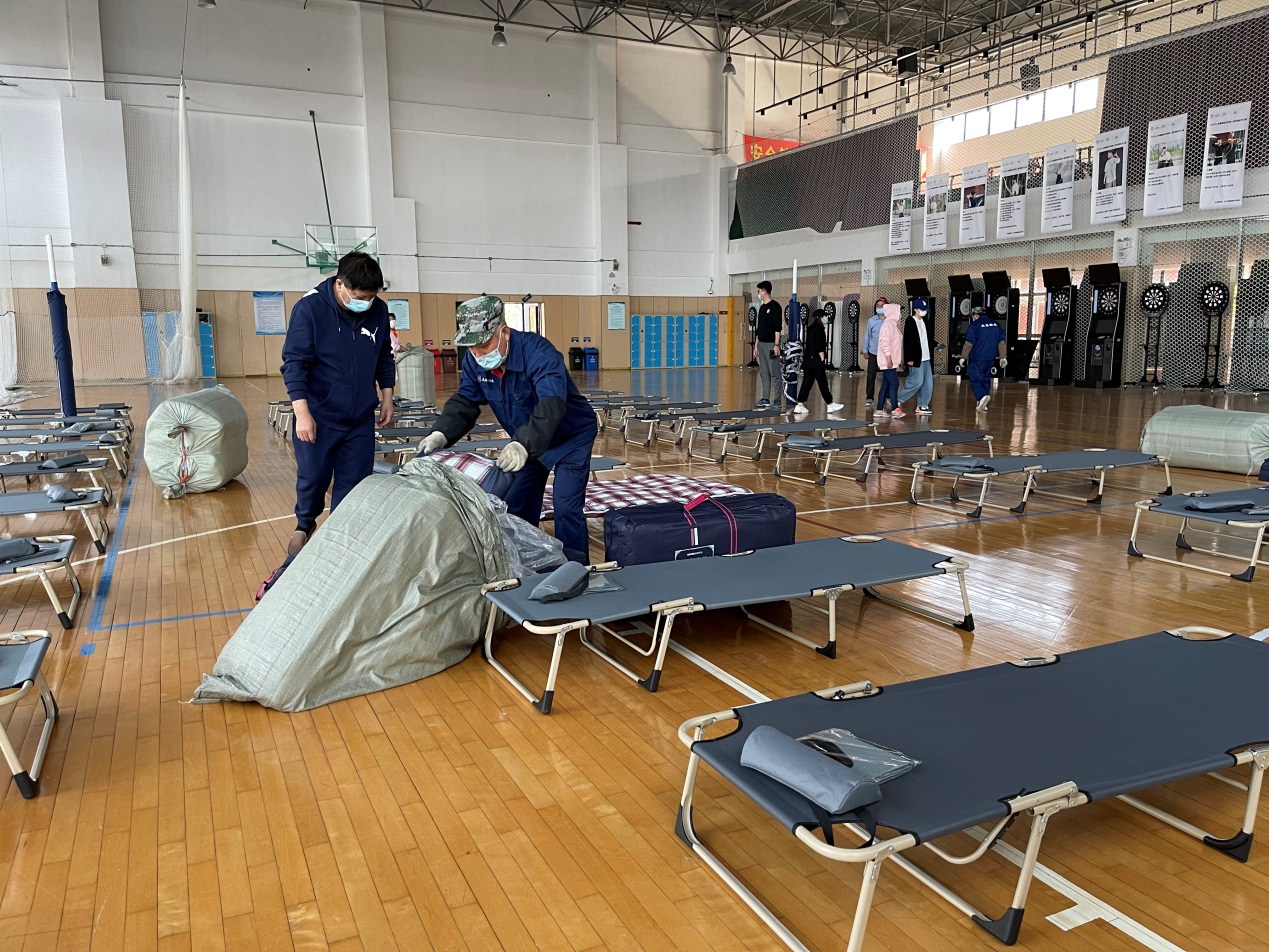 在这些党员干部的带头模范作用下,我们全体后勤和物业员工也是个个积极踊跃,力争成为第一批合格的抗疫服务突击队员。在一人多岗的超强劳动模式下,他(她)们不退缩,即使双腿肿痛、面色浮肿也无怨言,坚持做好校园环境的清洁消杀、物资搬运、住宿管理、餐食配送等,一天十几小时劳累过后,他们即在地板上,或在简易床上进行休息,他们开工于清晨,收工于深夜。为了学校大家,我们每个普通后勤物业人都愿出份力。